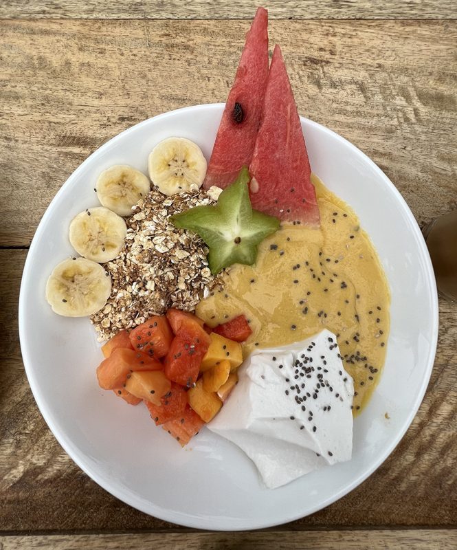 While you may recognise most of the fresh tropical juices on offer, you may find some you don’t recognise. On offer are juices like wood apple juice, green oranges which look like large, wrinkled limes but are a very refreshing orange, green mango, watermelon, papaya, banana or maybe a bright red dragon fruit juice.