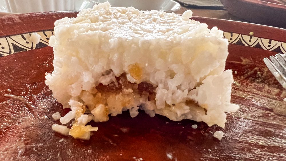 You may be served a small brown lump which looks like a bit of Scottish tablet or fudge. This is jaggery which is a natural sweetener made from the sap of the kithul tree.