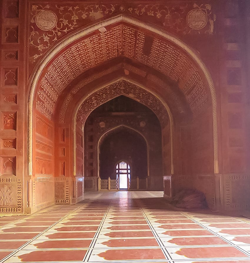 While the Taj Mahal is beautiful from a distance, get up close and really look at the building. Explore the work of the many masons, stone-cutters, inlayers, carvers, painters, calligraphers, dome-builders and other artisans who together created it. Admire the gardens, the pools, the symmetry. Look inside the Mosque at the floors which echo the silhouette, gaze up at the work on the ceilings.