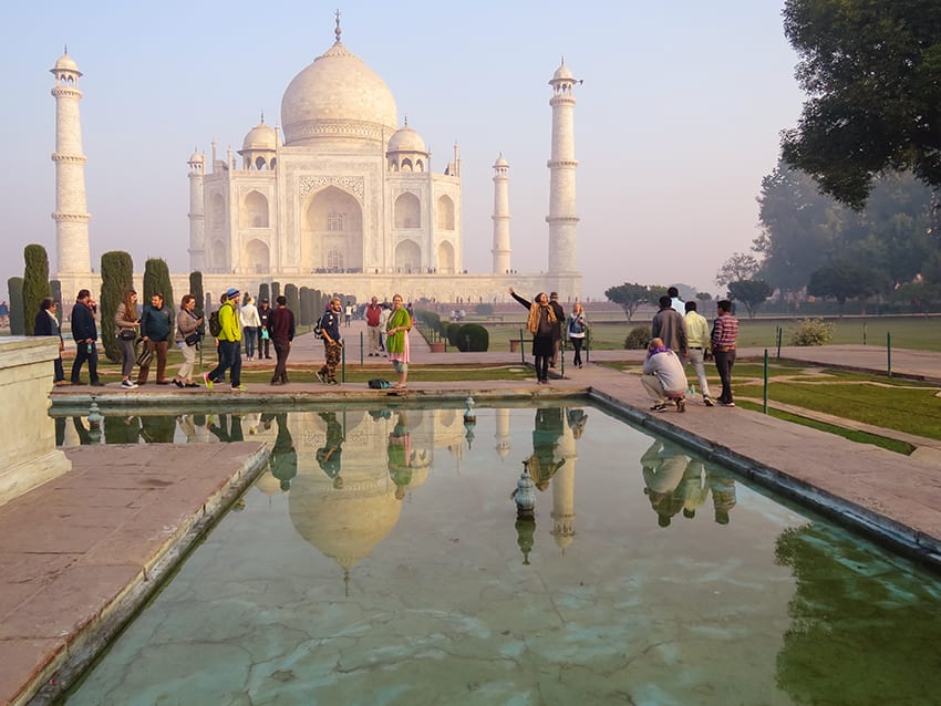 The Taj Mahal can get very, very busy. All times of day people are trying to get their shots and there can be some jostling, but just be patient and stand in the informal queue for the “Diana” shot. Try not to get too irate when the umpteenth person stands in front of you just as you are about to take your perfect photo, they will move on and you will get your shot. Also be mindful of other people taking their photos around you!