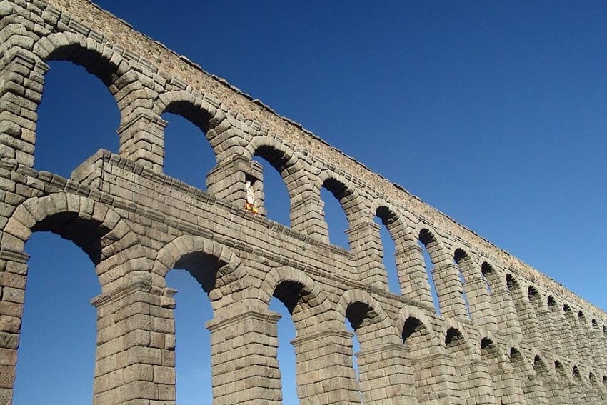 What we do know, though, is that it’s one of the best-preserved ancient Roman engineering works in the world and is still in use today. The aqueduct carries water 15 kilometres from the Frío River in the Sierra de Guadarrama mountains to the centre of Segovia.