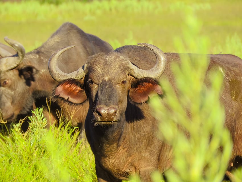 Refreshed from our siesta and some afternoon tea, it was time for our second safari of the day. Taking a different route out of the camp, we went to look for another of the Big Five, the water buffalo. And boy did we find them!