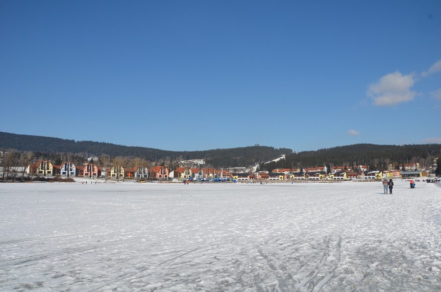 On the frozen Lipno Lake, a track is kept snow-free, which makes it ideal for ice skating. There are kilometres of natural ice to skate or walk on. If going early in the morning, the lake will be almost free of people.