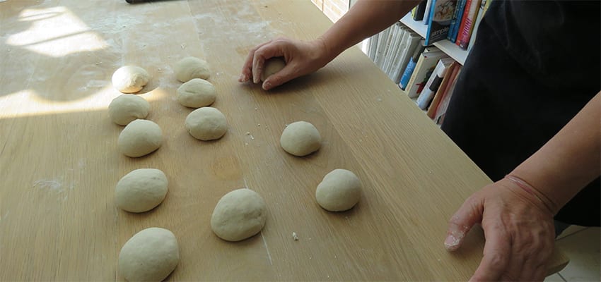 It was time to flex my muscles, stretching and pulling the dough back on itself to remove all the air bubbles and give it a smooth even texture. The dough was shaped into rounds and cut with a lame to allow it to expand while it bakes and popped into the oven.
