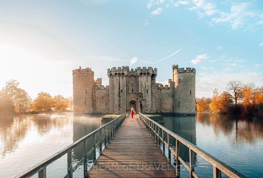 Located near Robertsbridge in East Sussex, this medieval castle is like something from a fairytale. Dating back to the 14th century, Bodiam Castle is surrounded by a reflective moat, magnifying its magical sandcastle-like appearance.