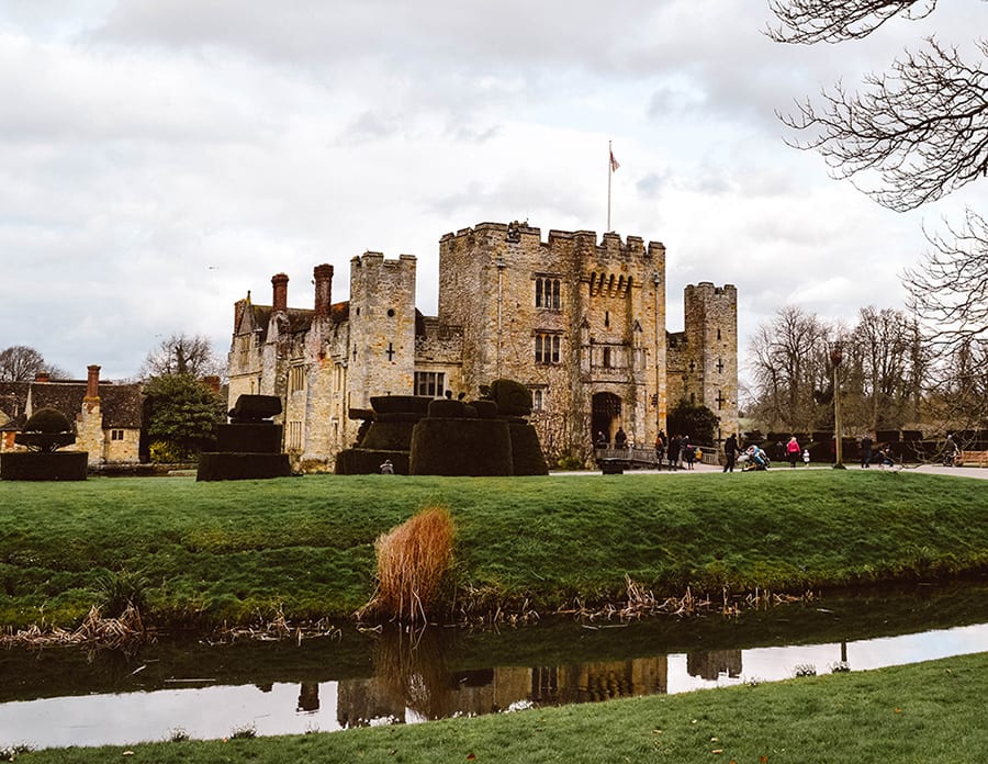 Hever Castle is a stunning 13th century Tudor style castle located in the beautiful countryside of Kent, only 40 minutes from London by train. The castle is surrounded by a large double-moat and a series of elaborate gardens featuring fountains, sculptures, and ponds.
