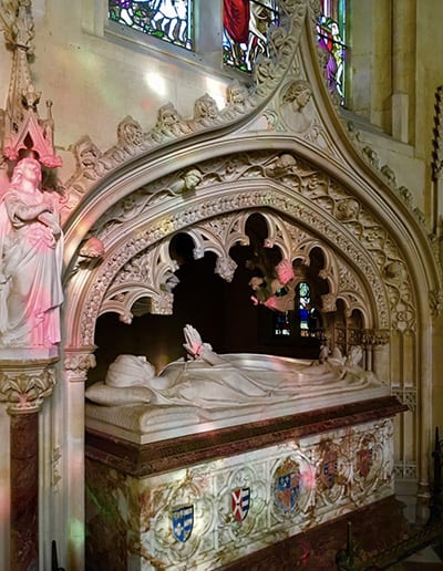 In Leicester’s Gatehouse, an installation details the “romance” between Dudley and Queen Elizabeth including costumes, letters, and paintings. You can see an Elizabethan bedroom and the Oak Room, which were once Queen Elizabeth’s private rooms. There is a stunningly ornate alabaster fireplace and a four-poster bed with curtains, which was the height of luxury in its day.