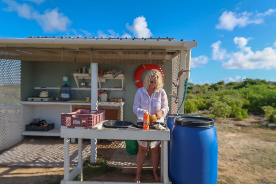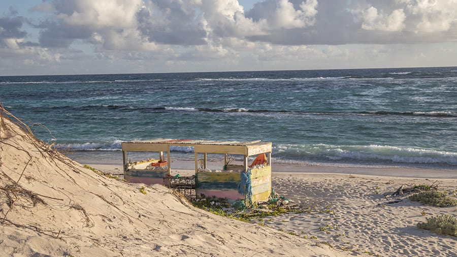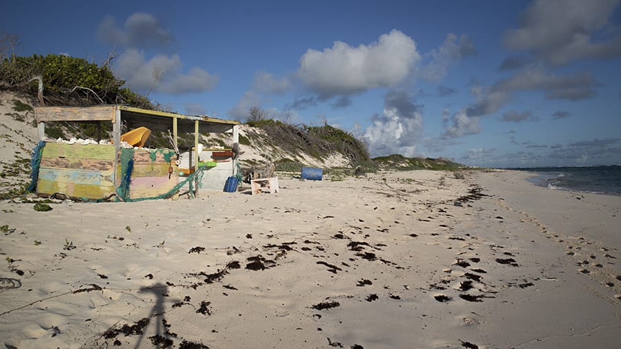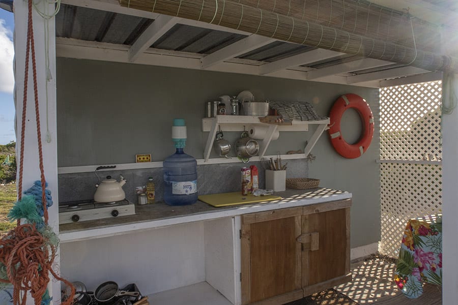 The wooden seating around the area are made from old tree stumps with planks attached and the barbecue is simple and brick built. The beach hut is made from was made from recycled Hurricane Irma materials. And while the raw materials might be simple, the construction is done to a very high standard.