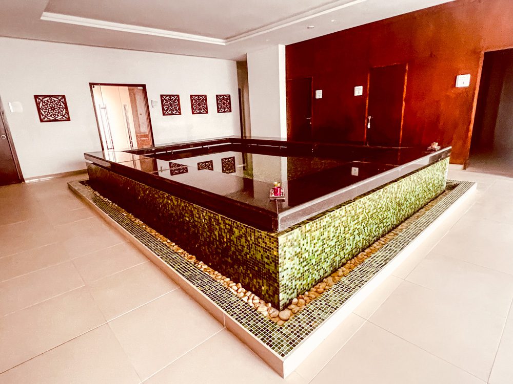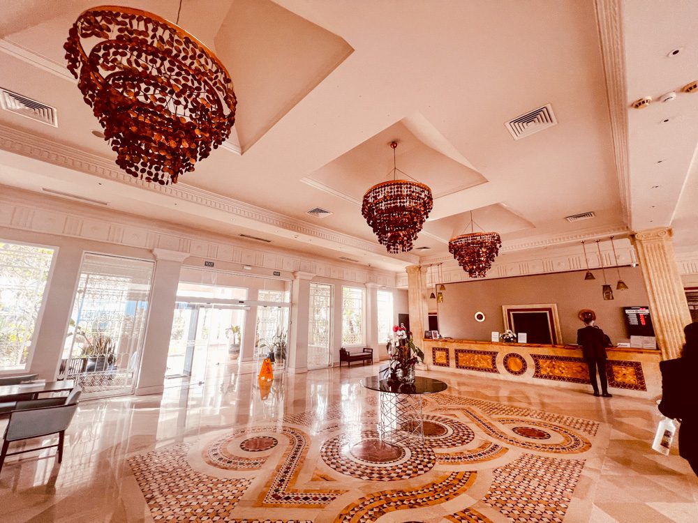 The large bright and airy reception has an inlaid floor and amazing chandeliers. There is plenty of seating in the reception area if you are waiting for your transport or just want to relax.