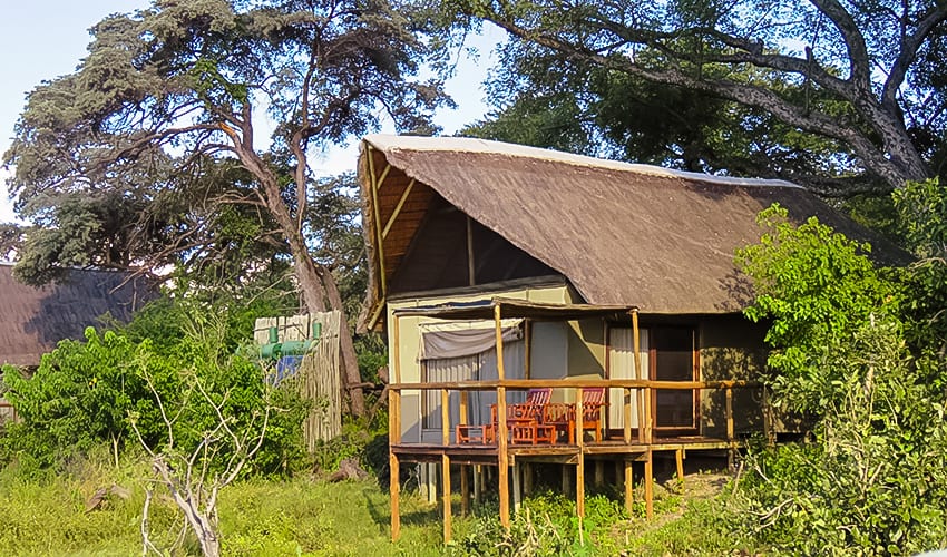 Although it is located in the midst of the Kalahari Desert, the Okavango River floods the Okavango Delta annually leaving behind floodplains, smaller rivers as well as more sandy savannahs. This means that each campsite offers a different environment.
