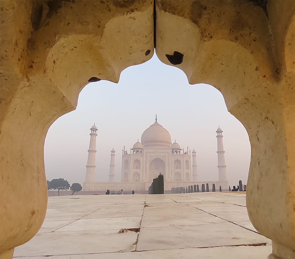Don’t forget the view of the Taj Mahal from outside the complex. Look out for rooftop restaurants with clear views and admire it from afar. Take a tuk-tuk to Mehtab Bagh, the beautiful park area across the river from the Taj Mahal. Have a look through the openings in the Agra Fort.