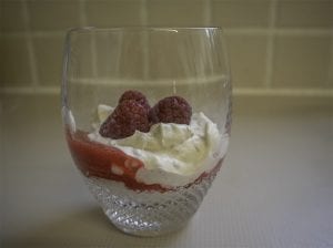Divide the between the 4 serving dishing, alternating the cream with the pureƩ and remaining raspberries. Pop in the fridge to chill before serving. Enjoy!